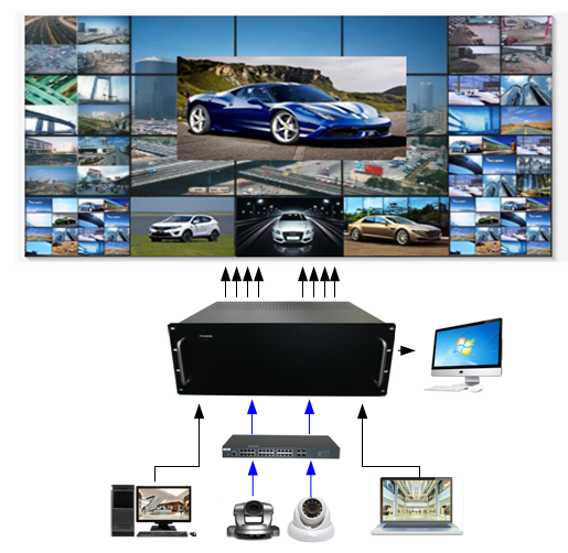 • 內(nèi)蒙古雪亮工程 采用我們公司4進(jìn)48出外置拼接解碼處理器